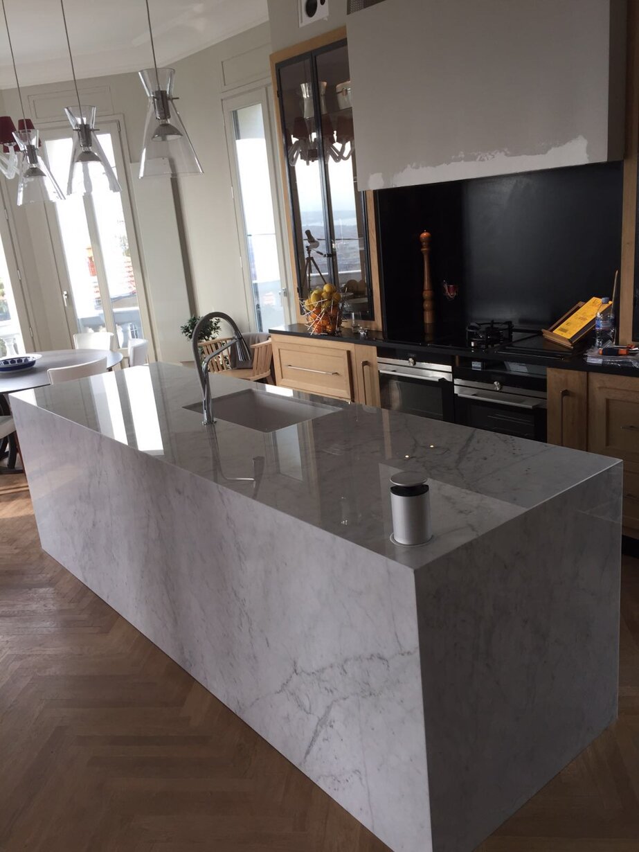 Lavoriamo Marmi e Graniti per l'Edilizia o la Funeraria e le Grandi Lastre in Gres per realizzare Top di Cucine, di Bagni o Tavoli da Pranzo.